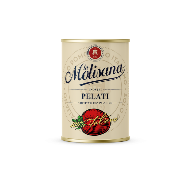 Tomates perita enteros pelados, cultivados en Apulia (Italia), de color rojo intenso, con sabor dulce y natural. Se presentan en su propio jugo de tomate, listos para usar en salsas, guisos, pizzas o preparaciones tradicionales italianas. Ingredientes: tomates, jugo de tomate, regulador de acidez